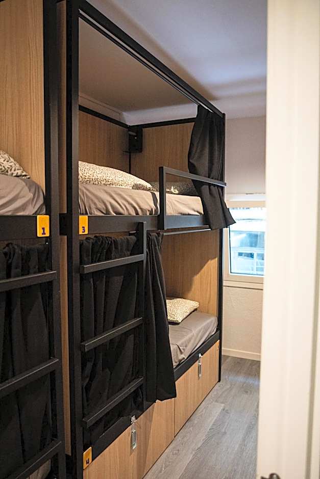 A single bed in 4-bed mixed sex air-conditioned dormitory. The room has access to a shared bathroom with a shower and hairdryer.